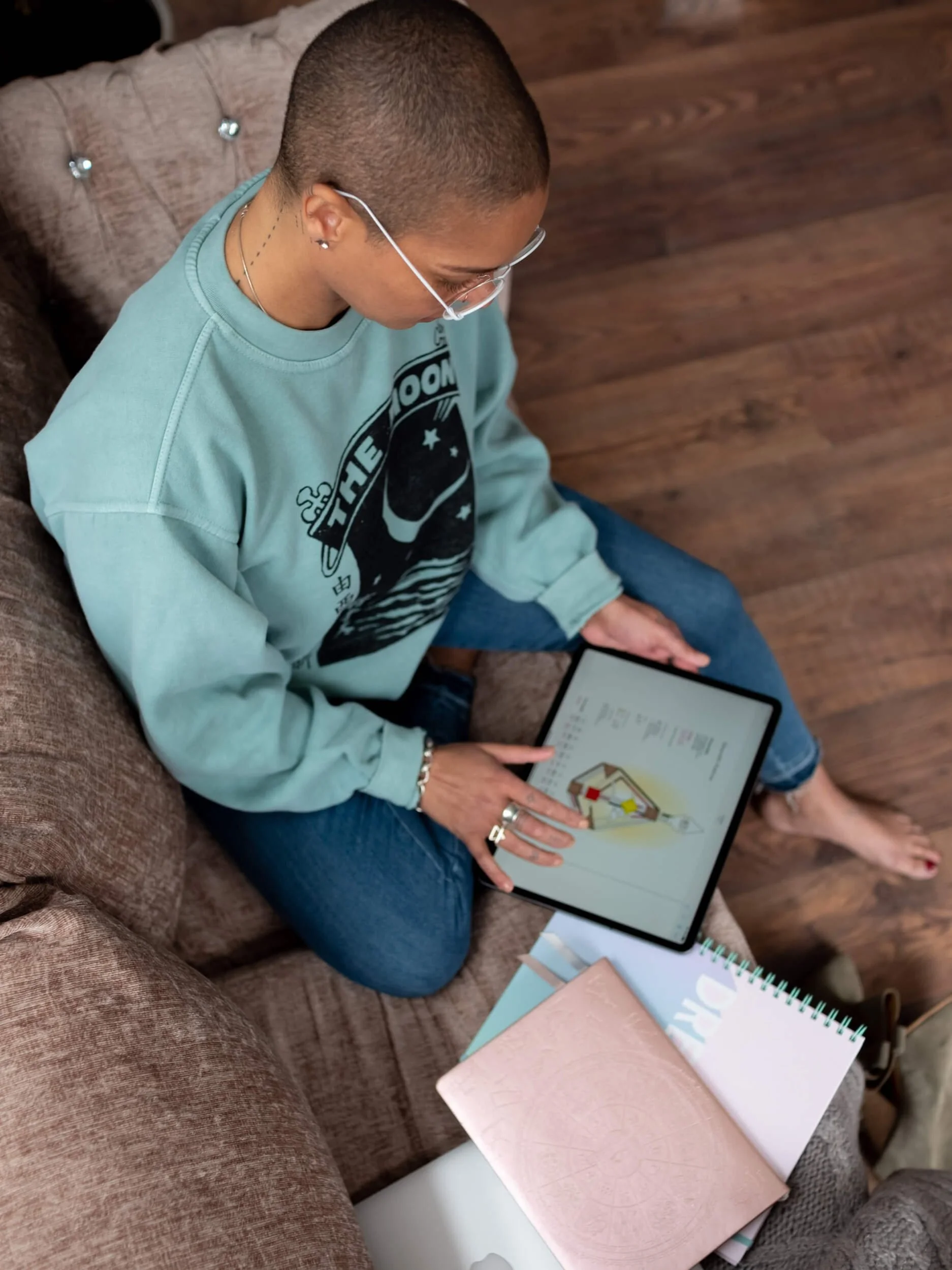 I work with creative, strong women who are looking to unbox self-expression, understand personal and business timing.